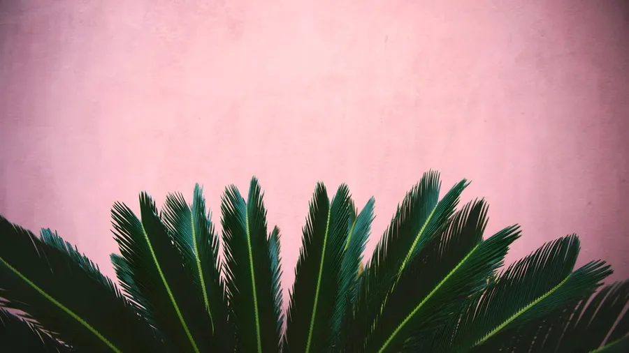 Daun Hijau Cerah Menonjol Di Latar Belakang Merah Muda Lembut Menciptakan Kontras Alami Yang Mencolok, Sempurna Untuk Inspirasi Desain Atau Tema Alam.